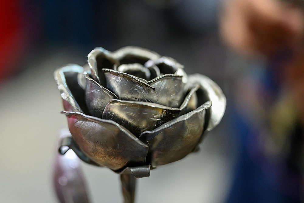 Scharfenberg enjoyed showing off his artistic side in the welding program, and created a flower for his girlfriend’s mom.