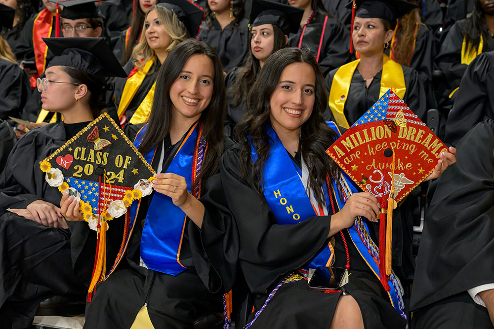 Patricia Hernandez Torquemada and Daniella Torquemada show off their graduation caps.